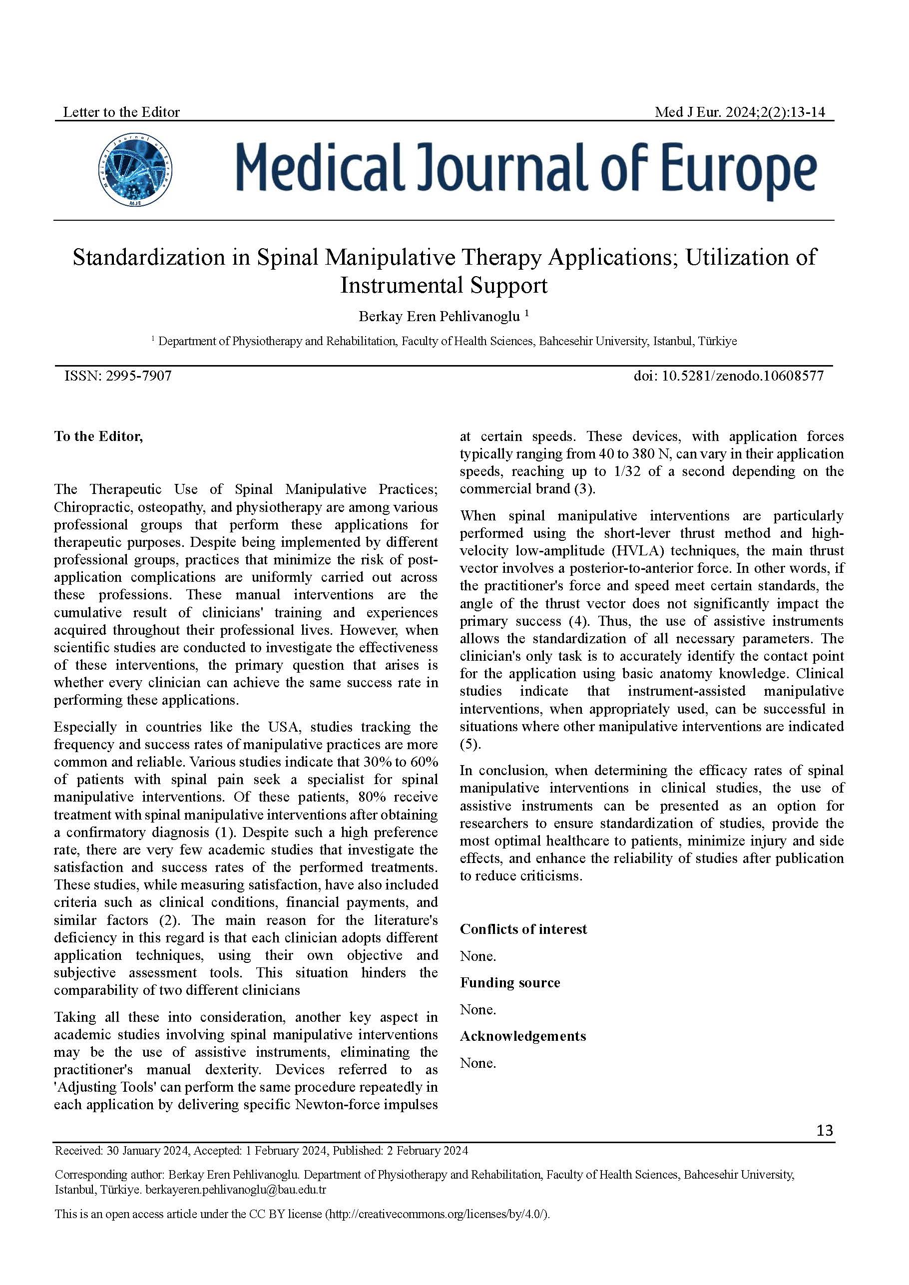 MJE 2024-2-13-14 (Pehlivanoglu) – Standardization in Spinal Manipulative Therapy Applications; Utilization of Instrumental Support_Sayfa_1Download